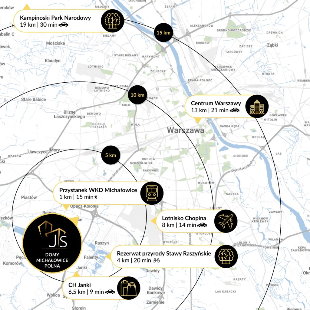 Masz dość tracenia godzin na dojazdy? W Michałowicach złapiesz balans – do centrum Warszawy dojedziesz w mniej niż 25 minut, czy to kolejką WKD, czy samochodem. Jesteś blisko wszystkiego, co ważne: biznesu, kultury, rozrywki i lotniska. Szybki dostęp do tras S2, S8 oraz autostrady A2 to gwarancja swobody podróżowania nie tylko po stolicy, ale i całym regionie. Oszczędzasz czas, a zyskujesz spokój i wygodę, których w mieście tak często brakuje.