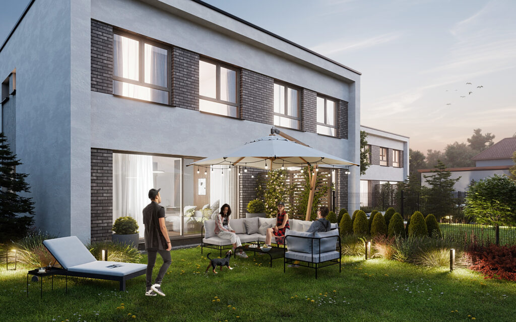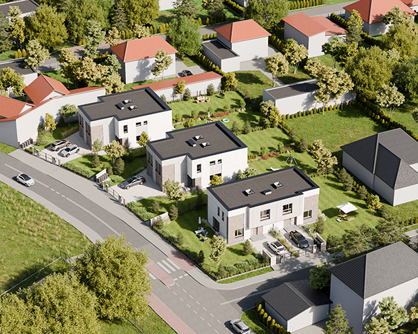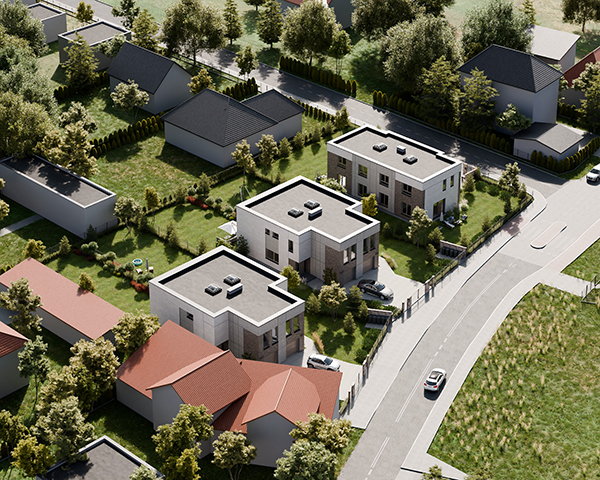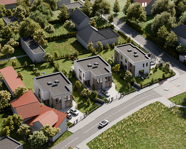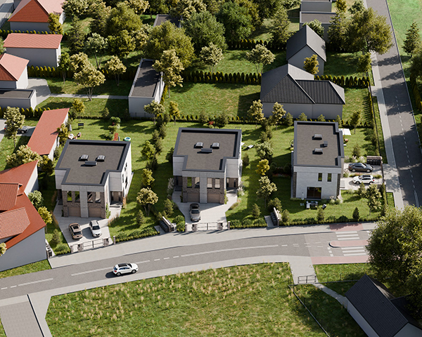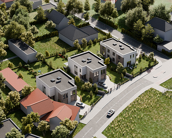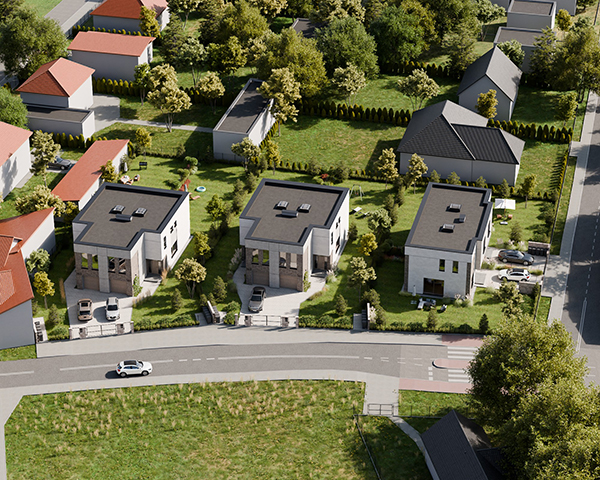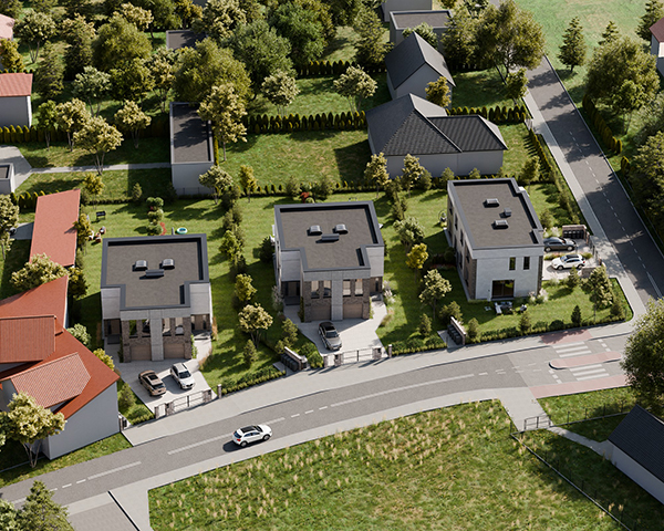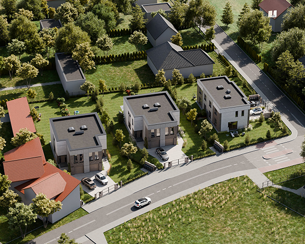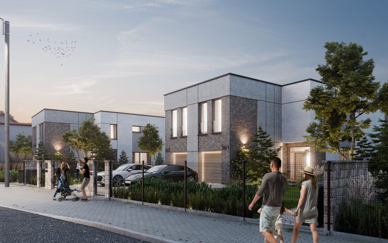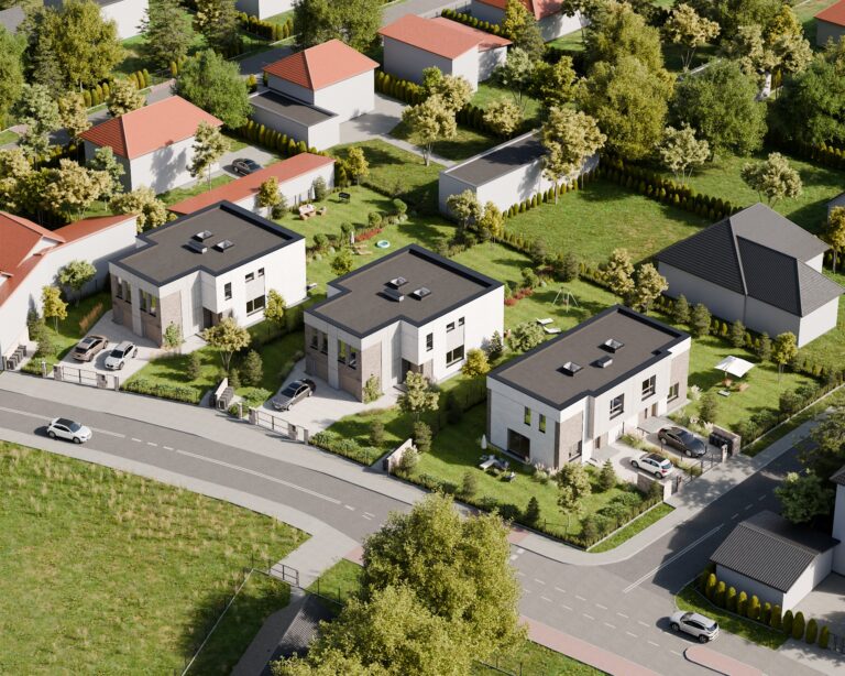 Domy Michałowice Polna to kameralna inwestycja złożona z sześciu nowoczesnych domów w zabudowie bliźniaczej. Prosta, elegancka bryła z płaskim dachem i dużymi przeszkleniami nadaje im miejski charakter, który świetnie wpisuje się w spokojną, willową okolicę. To miejsce stworzone dla osób, które cenią estetykę, ale nie chcą rezygnować z funkcjonalności. Tutaj każdy detal został zaplanowany tak, aby codzienne życie było wygodne i przyjemne.