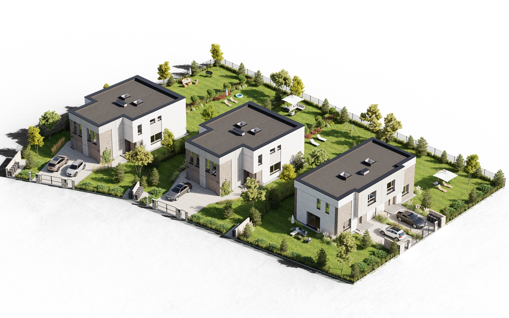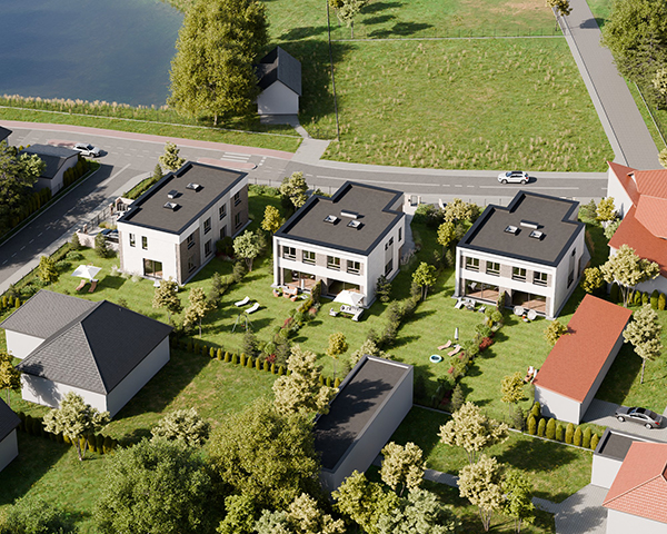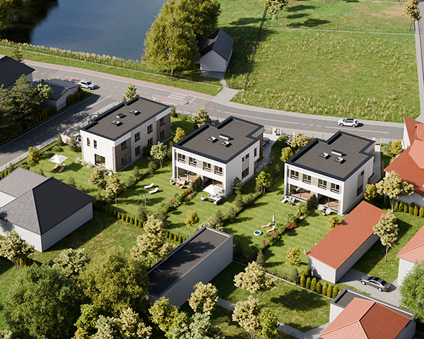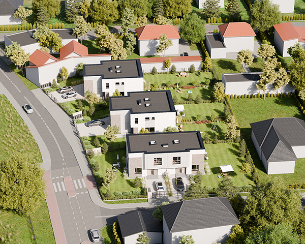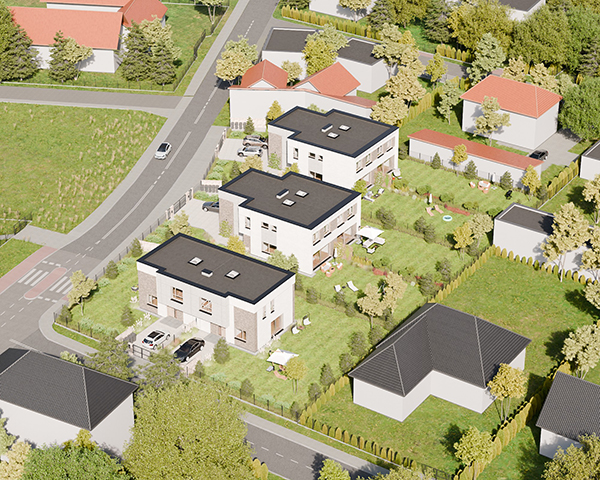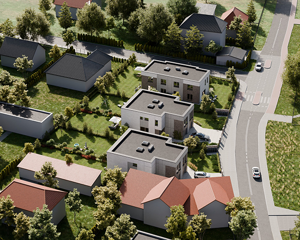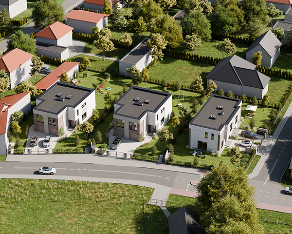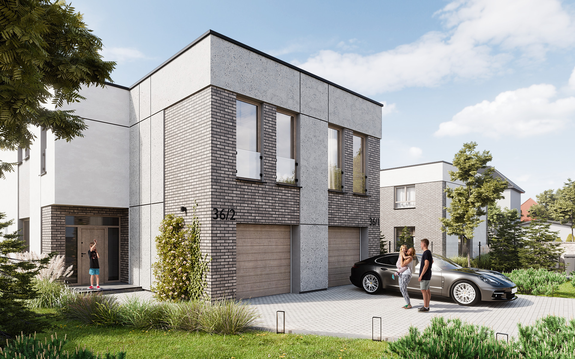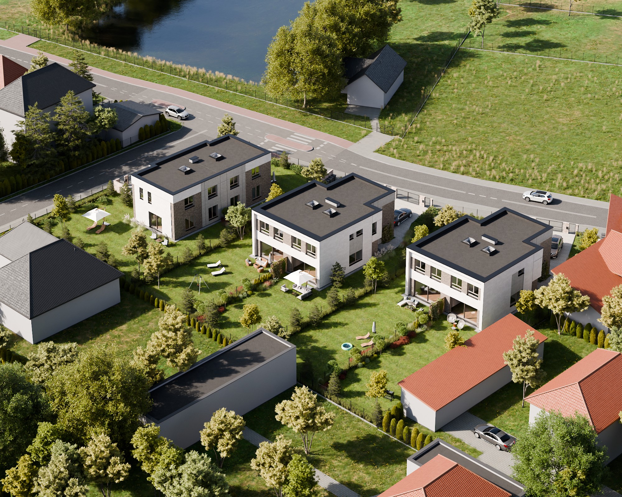 Domy Michałowice Polna to kameralna inwestycja złożona z sześciu nowoczesnych domów w zabudowie bliźniaczej. Prosta, elegancka bryła z płaskim dachem i dużymi przeszkleniami nadaje im miejski charakter, który świetnie wpisuje się w spokojną, willową okolicę. To miejsce stworzone dla osób, które cenią estetykę, ale nie chcą rezygnować z funkcjonalności. Tutaj każdy detal został zaplanowany tak, aby codzienne życie było wygodne i przyjemne.