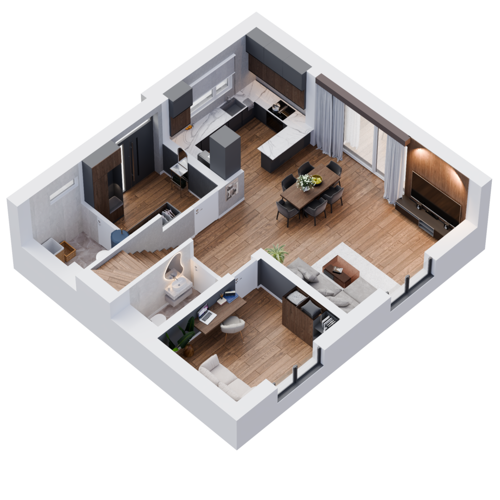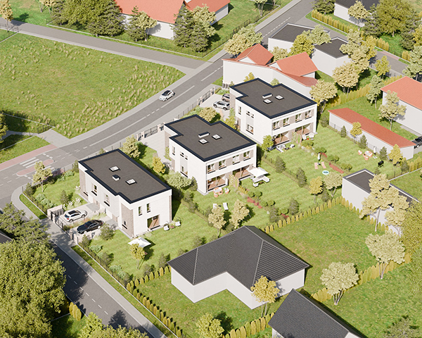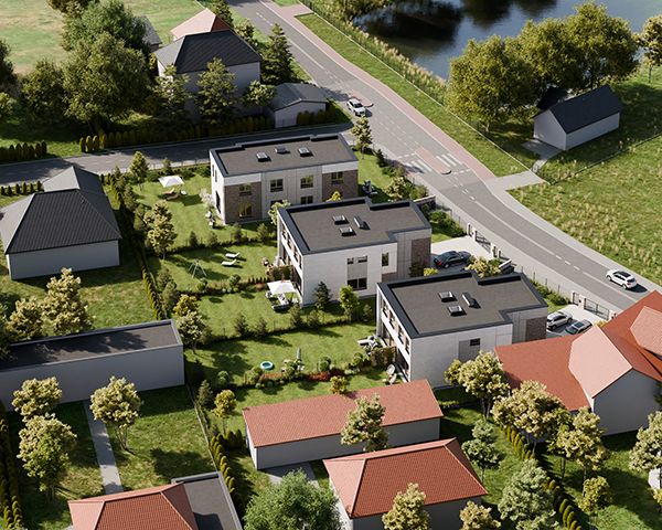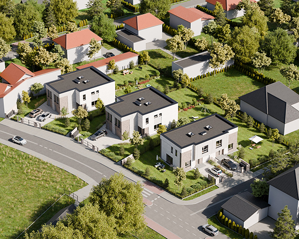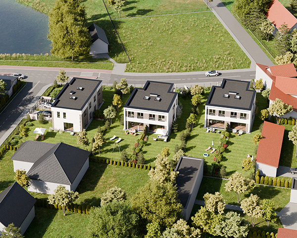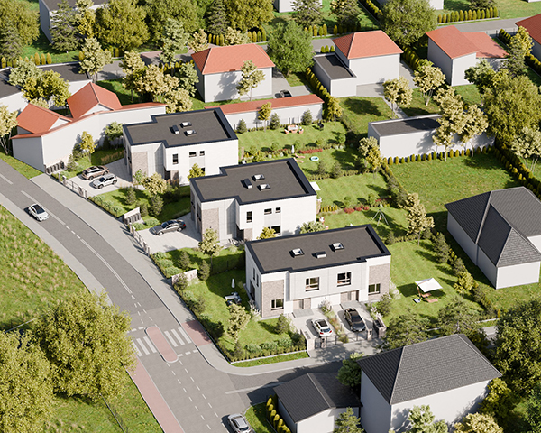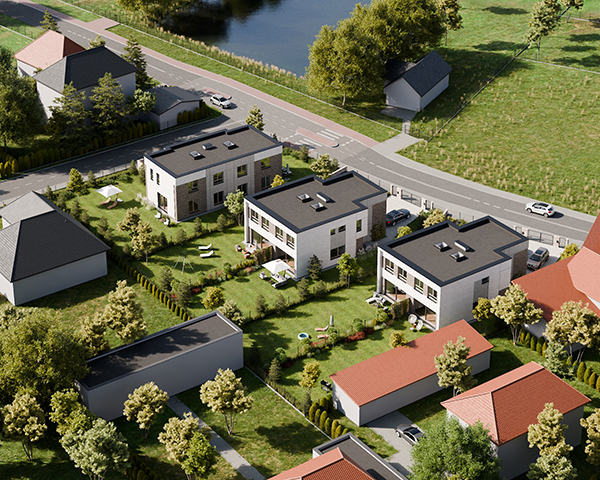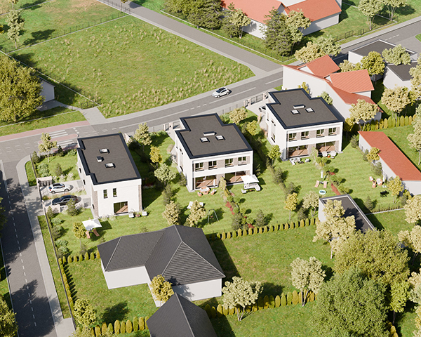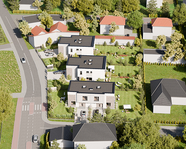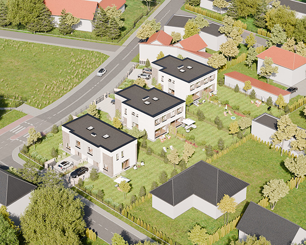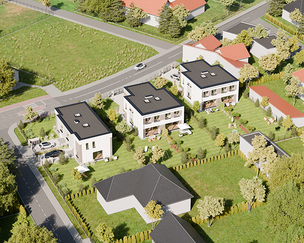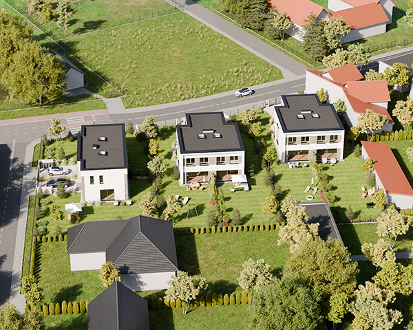 Domy Michałowice Polna to kameralna inwestycja złożona z sześciu nowoczesnych domów w zabudowie bliźniaczej. Prosta, elegancka bryła z płaskim dachem i dużymi przeszkleniami nadaje im miejski charakter, który świetnie wpisuje się w spokojną, willową okolicę. To miejsce stworzone dla osób, które cenią estetykę, ale nie chcą rezygnować z funkcjonalności. Tutaj każdy detal został zaplanowany tak, aby codzienne życie było wygodne i przyjemne.