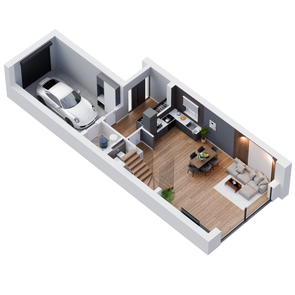 Do każdego domu przynależy ogród, w którym znajdziesz przestrzeń na spotkania z bliskimi, zabawy z dziećmi oraz chwilę wytchnienia po dniu pełnym obowiązków. To Twoja zielona strefa relaksu, gdzie wreszcie zwolnisz tempo i złapiesz oddech. Garaż w bryle budynku oraz dodatkowe miejsce postojowe przed domem sprawiają, że parkowanie przestaje być problemem. Wszystko jest na miejscu i pod ręką, tak jak powinno być w Twoim domu.