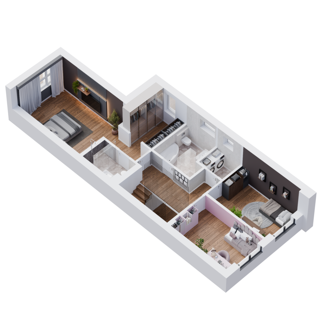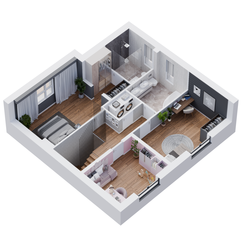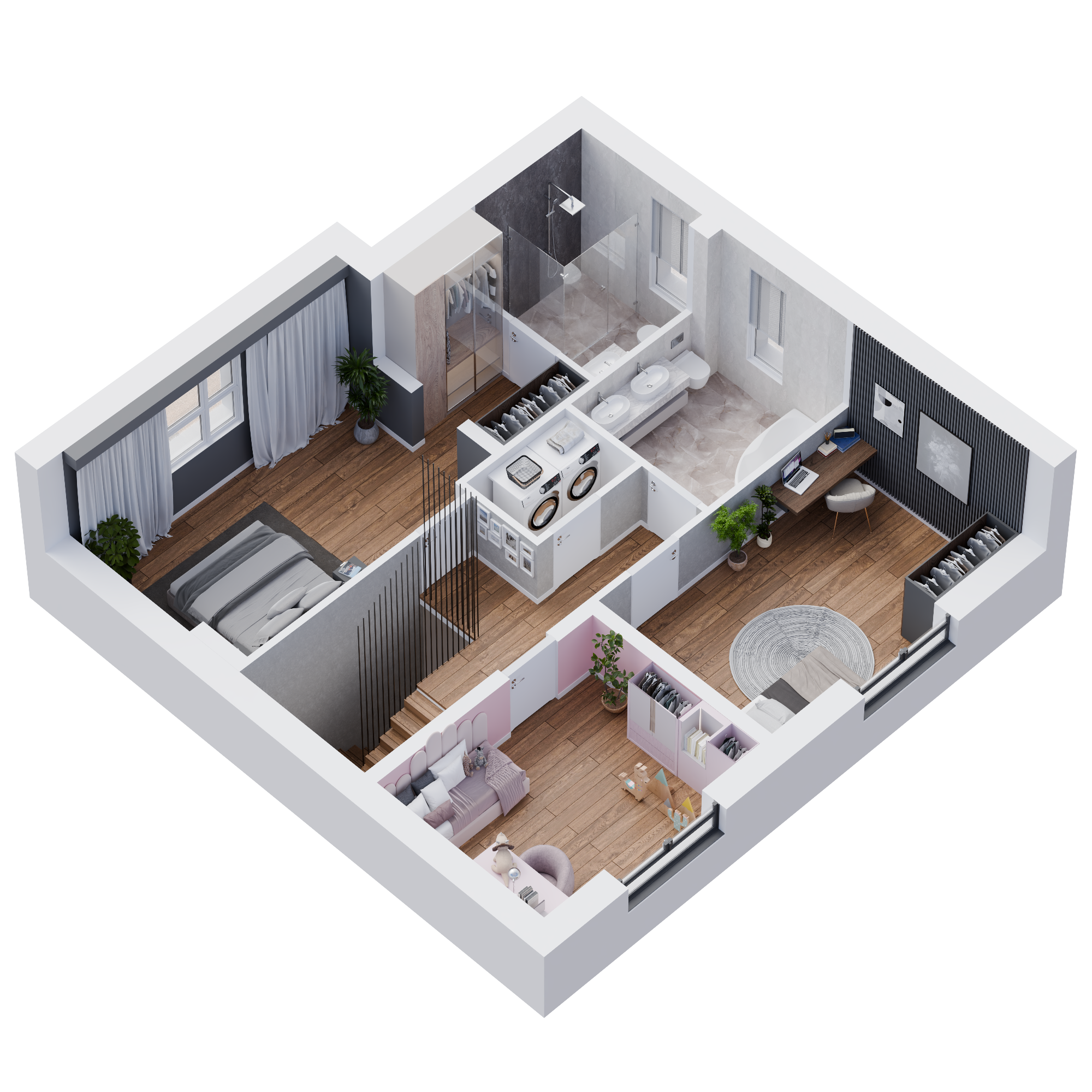Metraże od 127 m² do 146 m² oferują Ci swobodę wyboru układu dopasowanego do stylu życia Twojej rodziny. Możesz cieszyć się dużą garderobą, osobną łazienką dla rodziców, pralnią czy dodatkowym pokojem na gabinet do pracy zdalnej. Jasne wnętrza z dużymi przeszkleniami tworzą przyjazną, otwartą przestrzeń, którą zaaranżujesz dokładnie tak, jak chcesz. W tym domu masz swobodę rozwoju i realizacji planów na kolejne lata.