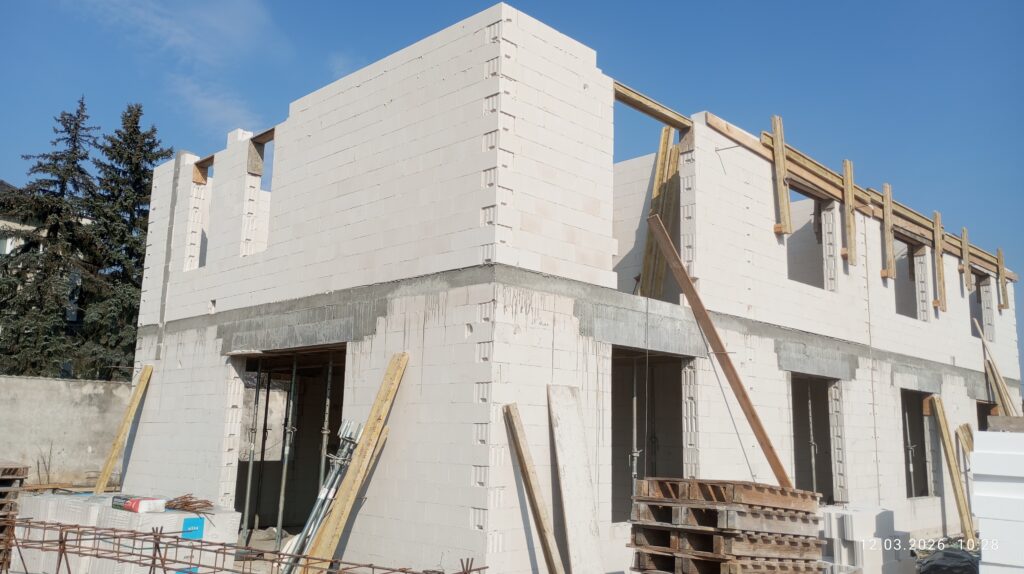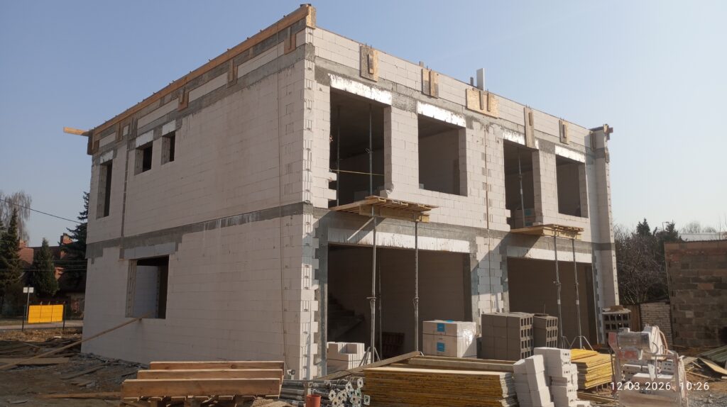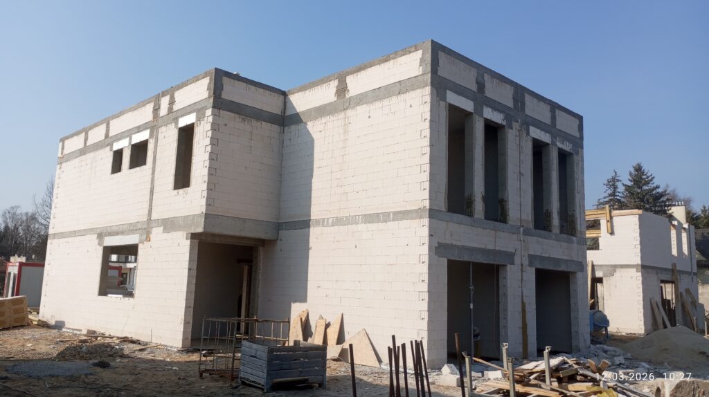 Marzec 2026. Na terenie inwestycji Michałowice Polna obecnie trwają prace konstrukcyjne. Już wkrótce rozpoczynamy montaż okien i drzwi.